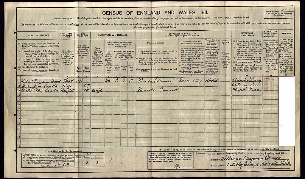 1911 Census Schedule # 26