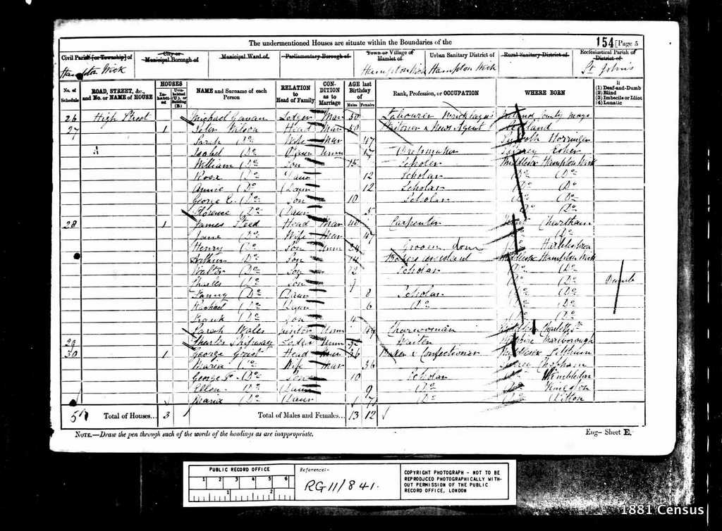 1881 Census Schedule # 27