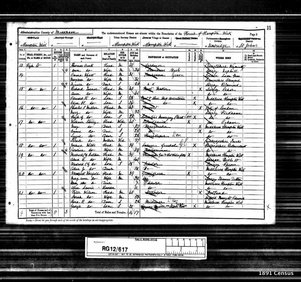 1891 Census Schedule # 21