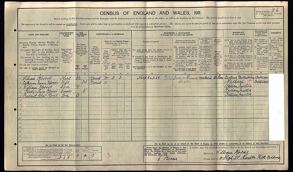 1911 Census Schedule # 86