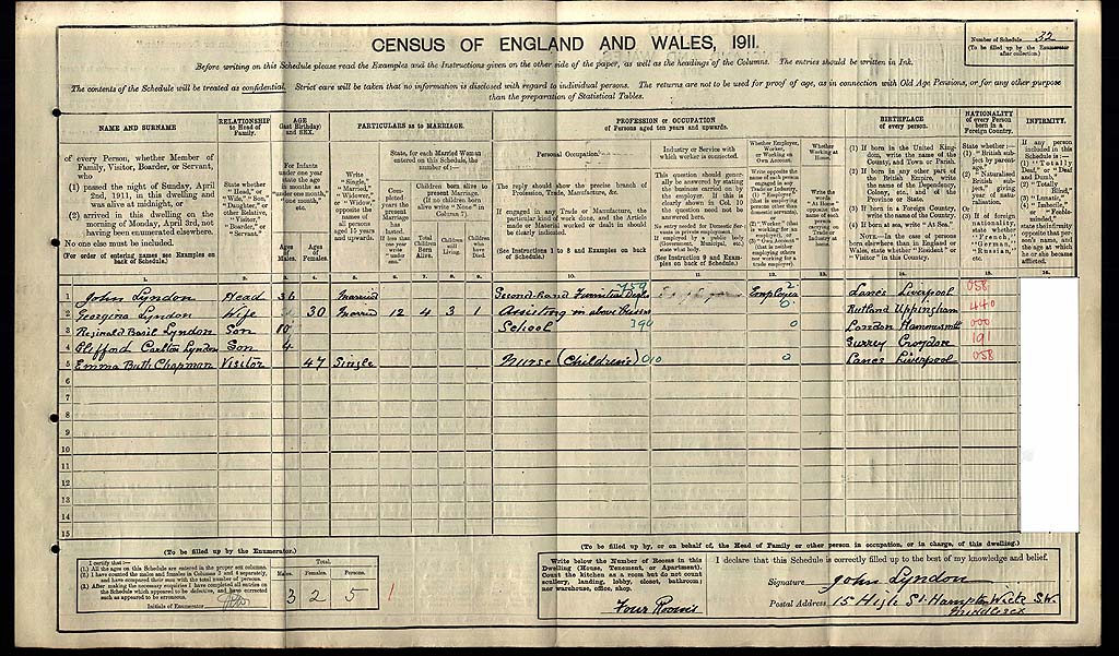 1911 Census Schedule # 32