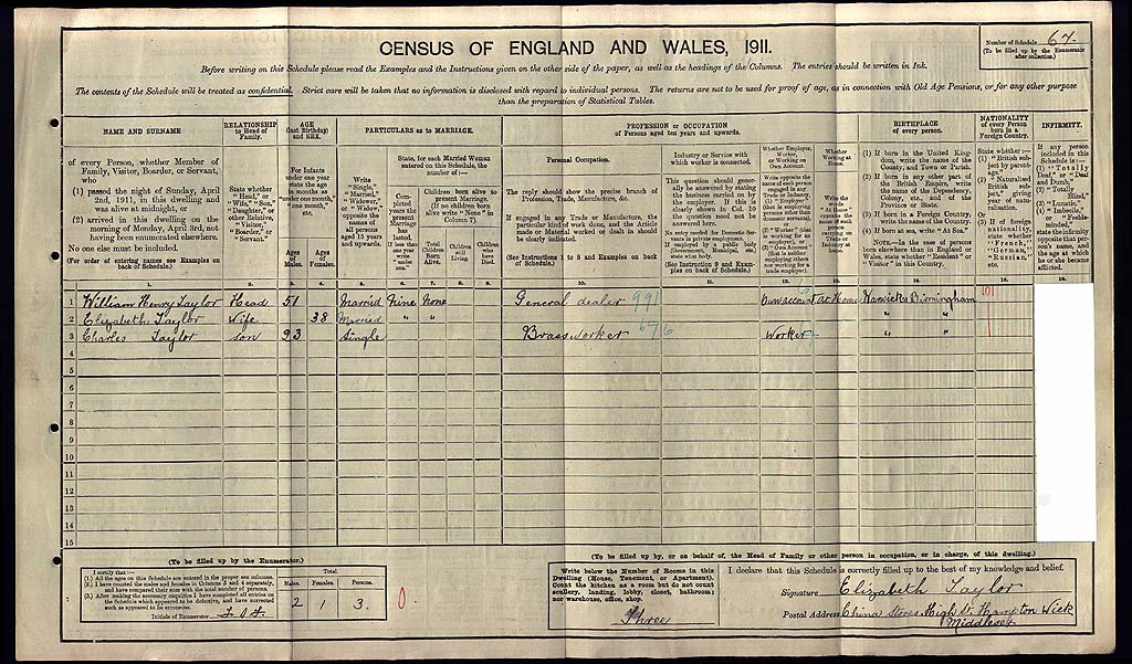 1911 Census Schedule # 67
